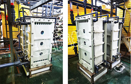 用于膜法水處理設備的前端預處理,為壓力驅動式過濾,可有效截留懸浮物、膠體、大分子有機物等雜質,同時也可以作為機械過濾器的二級過濾,充分保障過濾器出水的水質。根據進水水質的情況,平板過濾器可以選擇錯流過濾和死端過濾兩種方式。產水回收率一般可以達到80%~95%,進水壓力一般不超過2.0bar。
